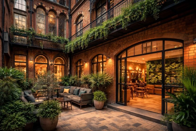 The Wesley Camden’s top-tier BREEAM rating is the result of a careful balance between modern energy-efficient solutions and the conservation of the hotel’s heritage. The building combines innovative technologies with sustainable design choices, ensuring a minimal environmental impact without compromising guest comfort.